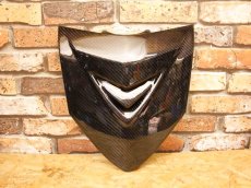 純正のアッパーカウルカバーに綾織りのカーボンを貼っています。