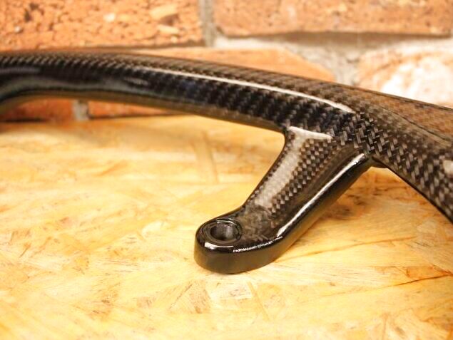 綾織りカーボンを純正のタンデムバーの上に直接樹脂で貼っていますので、両面テープで貼り付けるタイプに比べ質感が非常に高いです。