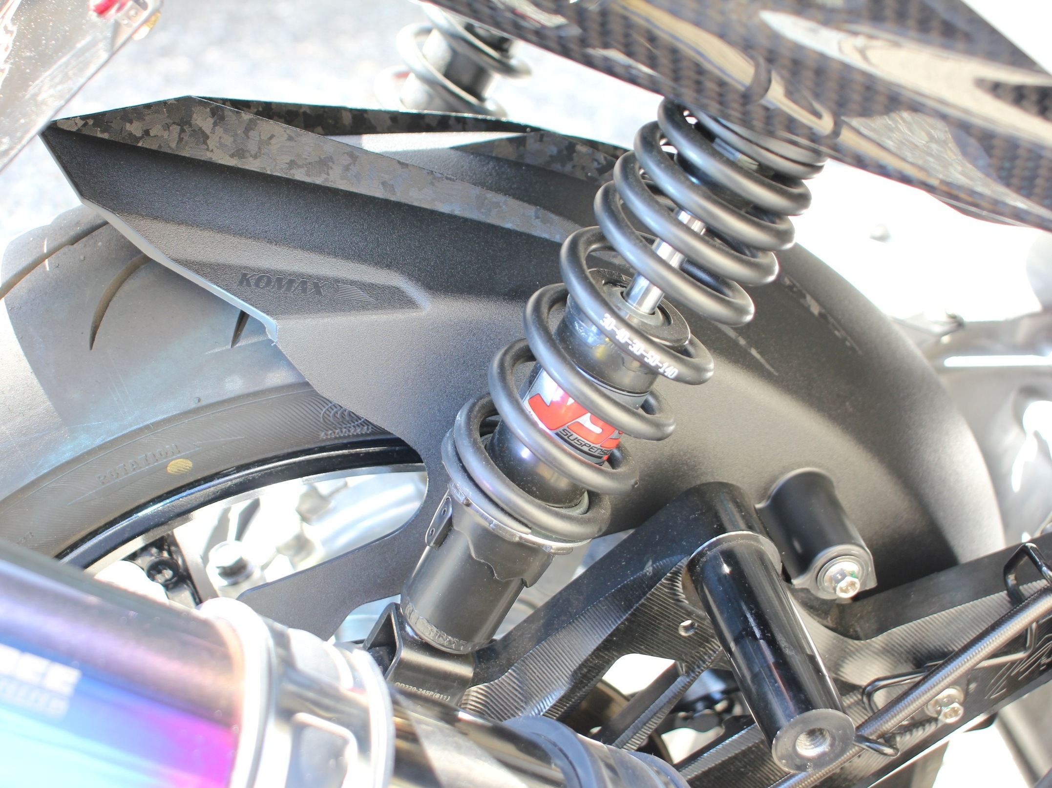 ポイントでフォージドカーボン柄があしらわれたスタイリッシュなリアフェンダーです。