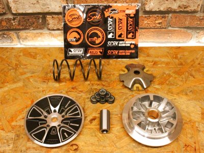 低速時のレスポンスに優れたアルミセカンダリーです。アルミのトルクカムはフェイス面の振れが非常に少なく、ベルトスリップやベルトの暴れを防ぎ、スピードアップやベルトの耐久性の向上にも貢献します。