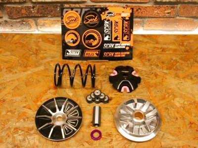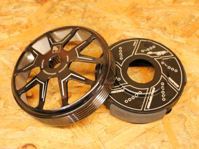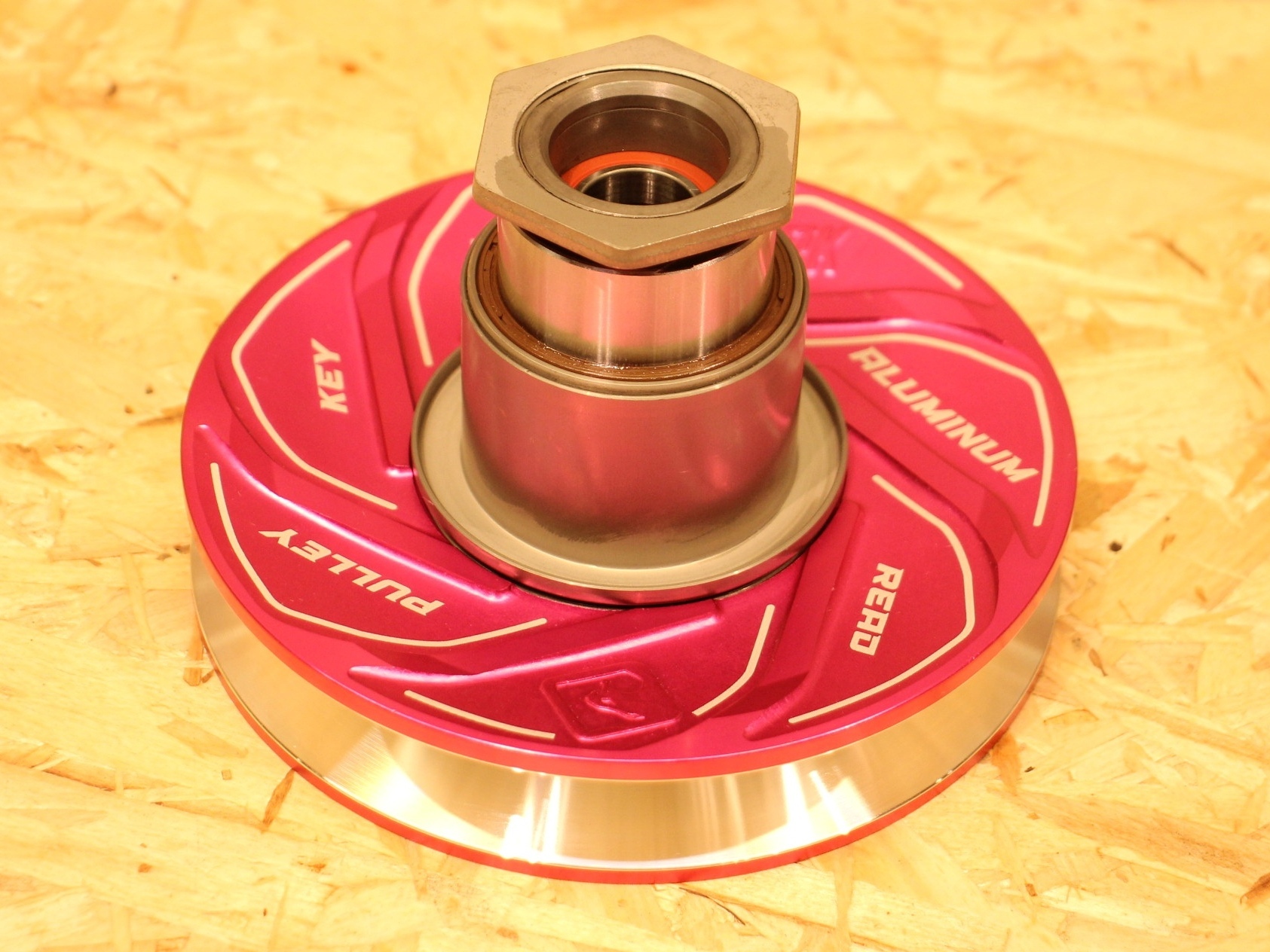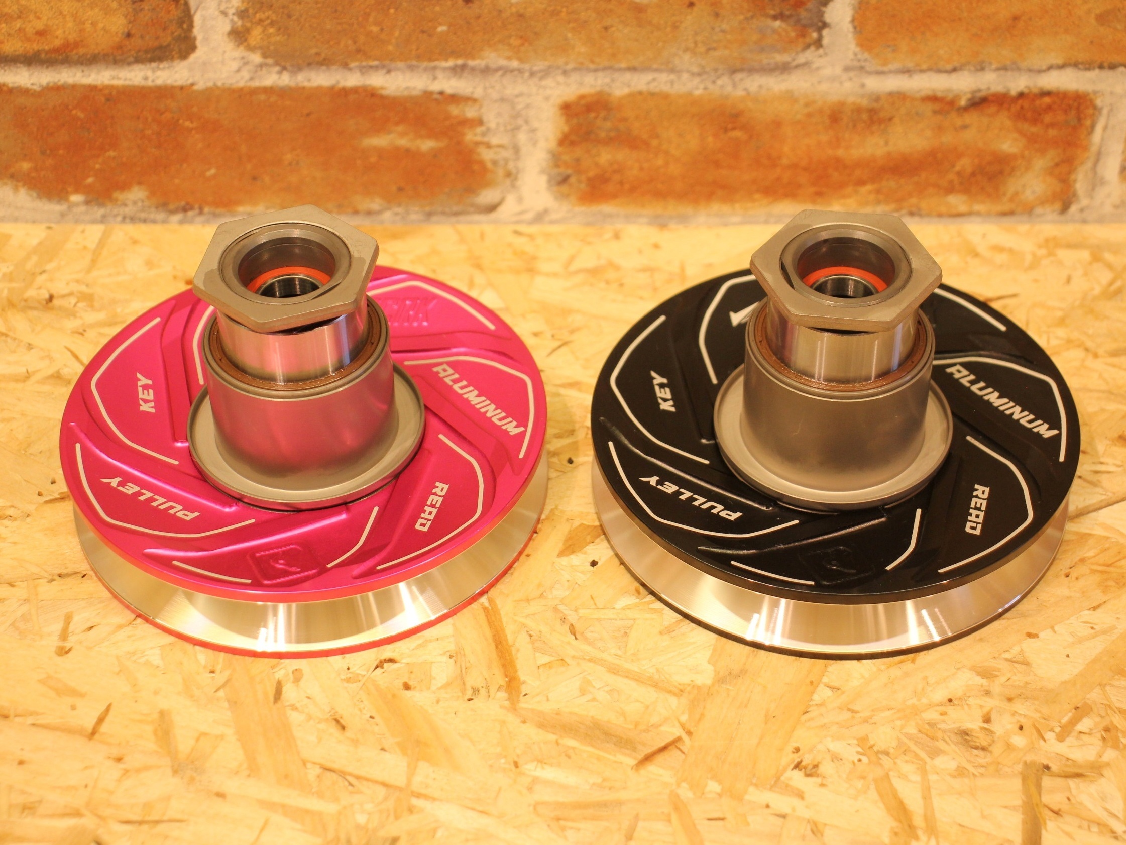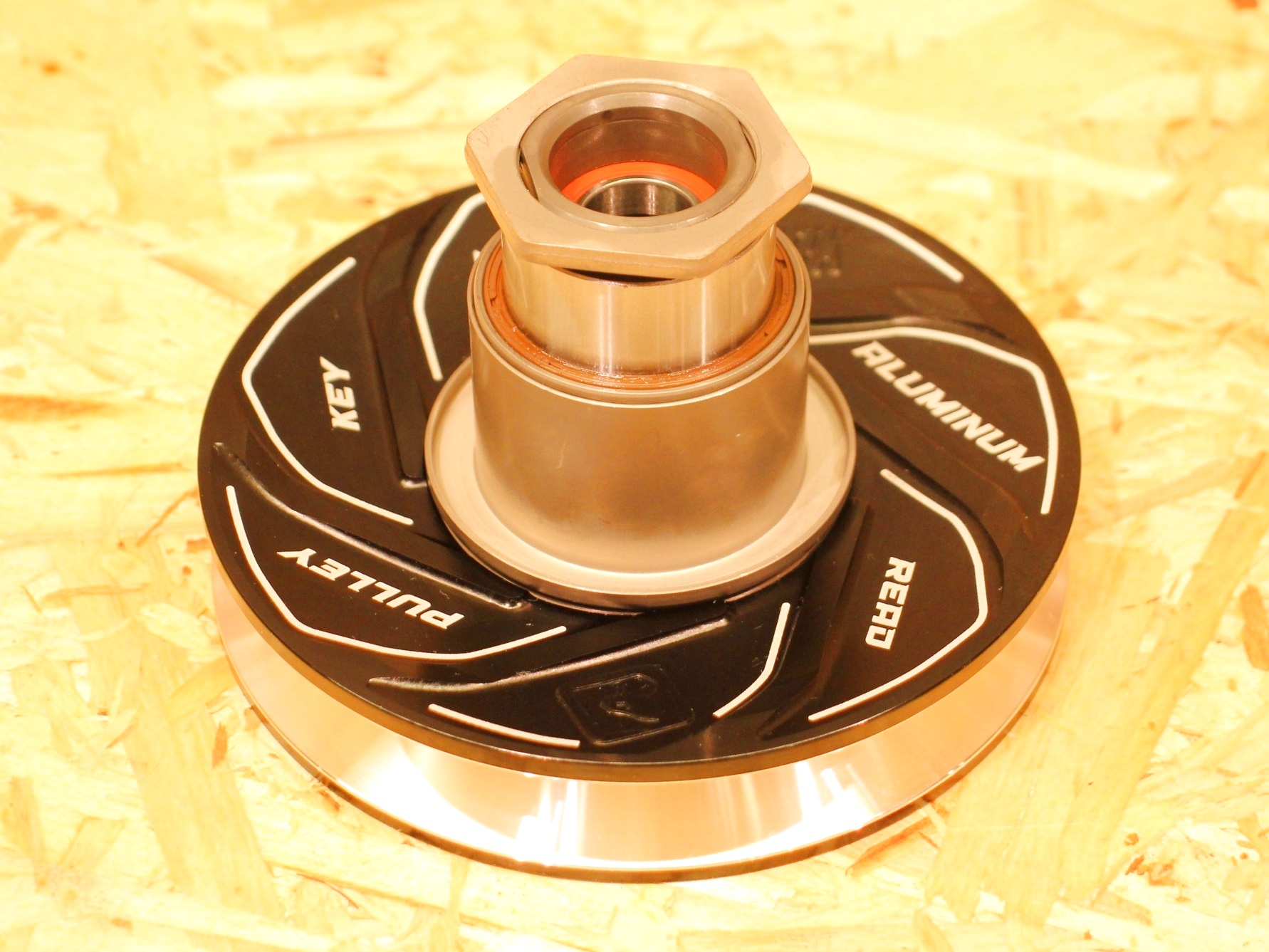 低速時のレスポンスに優れたアルミセカンダリーです。アルミのトルクカムはフェイス面の振れが非常に少なく、ベルトスリップやベルトの暴れを防ぎ、スピードアップやベルトの耐久性の向上にも貢献します。