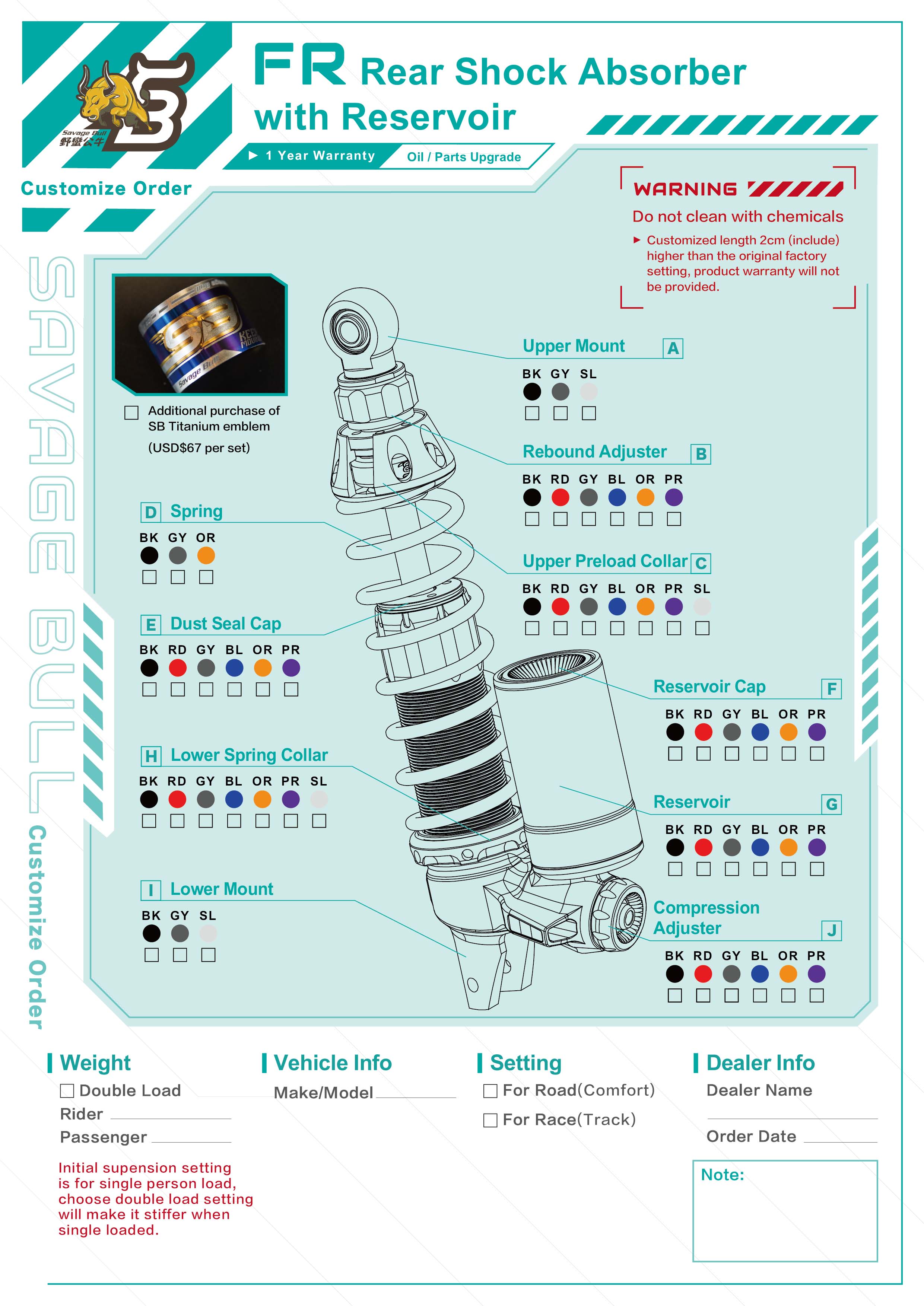 Savage Bull社のトップブランドとなるSavage Bullシリーズのリアサスペンションになります。