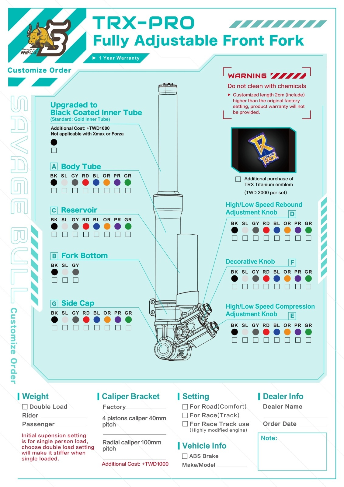 Savage Bull TRX-PRO 4wayフルアジャスタブルフロントフォーク[グリファス/X FORCE/マジェスティS] [SB-TRXP-]