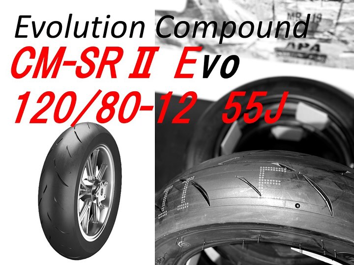 ※120/80-12サイズにミディアムハードコンパウンドを採用したCM-SR 2nd EVOもリリースされました。2ndと比べてグリップ感が向上し、耐久性は大幅に向上しました。
