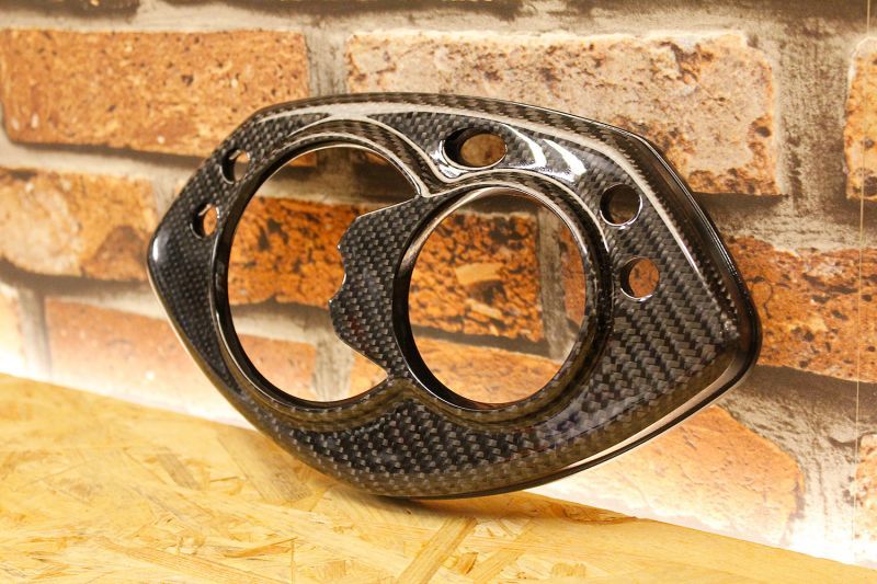 純正のメータートリムに綾織りのカーボンを貼っています。